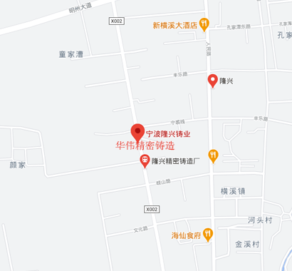 地址: 浙江省寧波市鄞州區橫溪鎮寧橫南路2086號 郵編: 315131 最新官網網址: www.investmentcasting.com 銷售部: 電話: 0574-88065888,88063688,13906686835 傳真: 0574-88471818 E-mail: sale@lx8.cn sale@cnlongxing.com 經理: 蔣乾 技術部: 電話: 0574-88069818,88066660 E-mail: tech@cnlongxing.com 采購部: 電話: 0574-88471189 E-mail: webmaster@cnlongxing.com